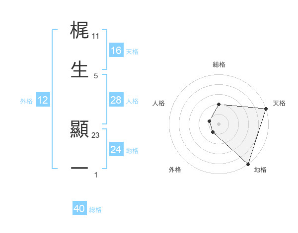梶生 顯一さんの総格は40画の2点!