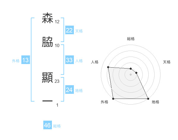 森脇 顯一さんの天格は22画の1点!