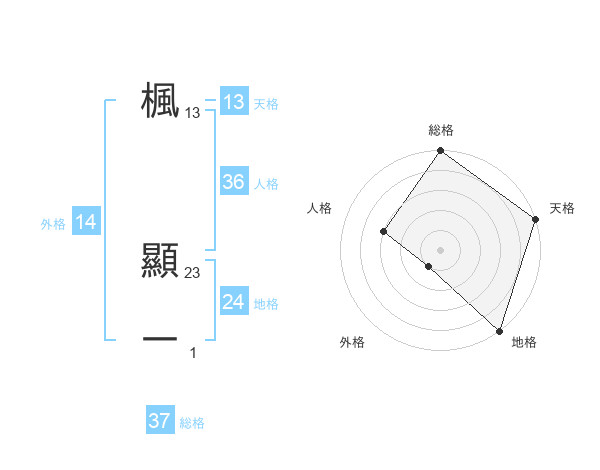 楓 顯一さんの総格は37画の5点!
