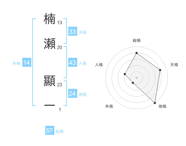 楠瀬 顯一さんの総格は57画の4点!