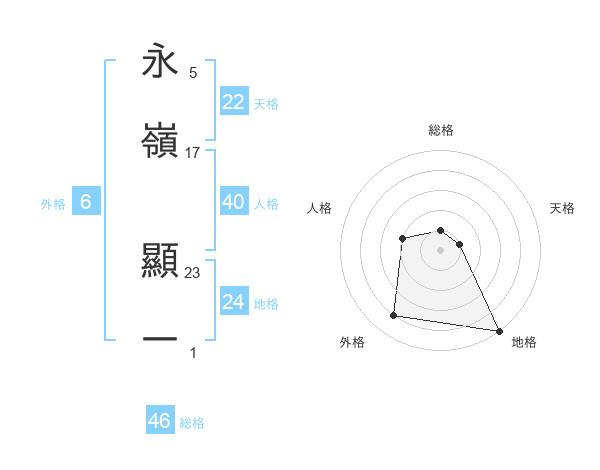 永嶺 顯一さんの天格は22画の1点!