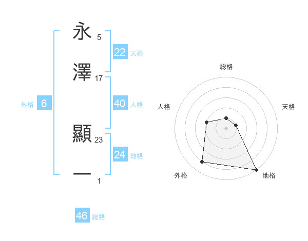 永澤 顯一さんの天格は22画の1点!