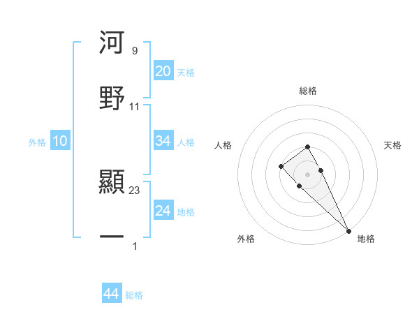 河野 顯一さんの総格は44画の2点!