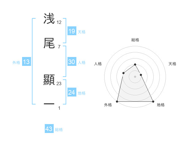浅尾 顯一さんの外格は13画の5点!
