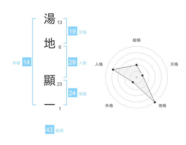 湯地 顯一さんを姓名の画数から五運を鑑定