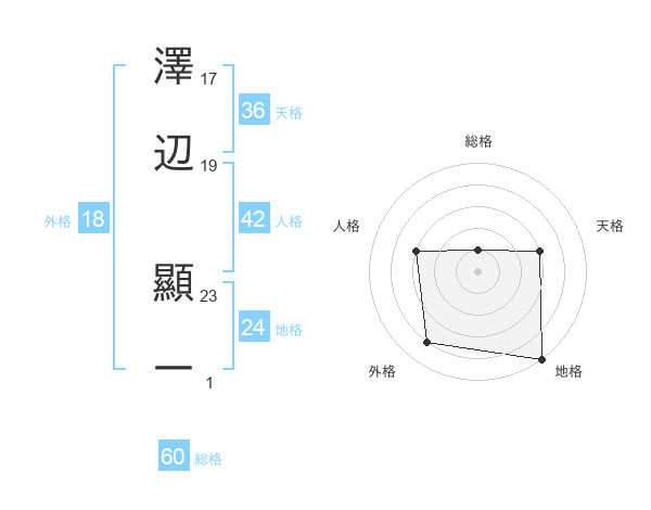 澤辺 顯一さんを姓名の画数から五運を鑑定