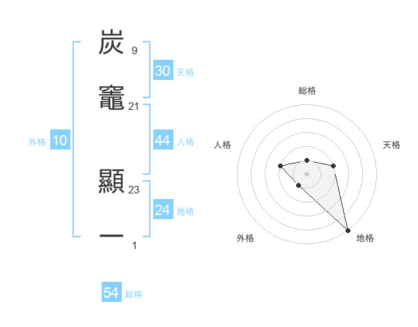 炭竈 顯一さんの総格は54画の1点!