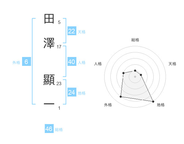 田澤 顯一さんを姓名の画数から五運を鑑定