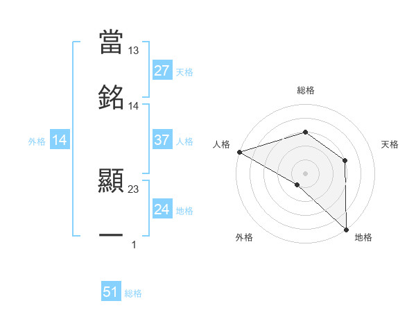 當銘 顯一さんの総格は51画の3点!