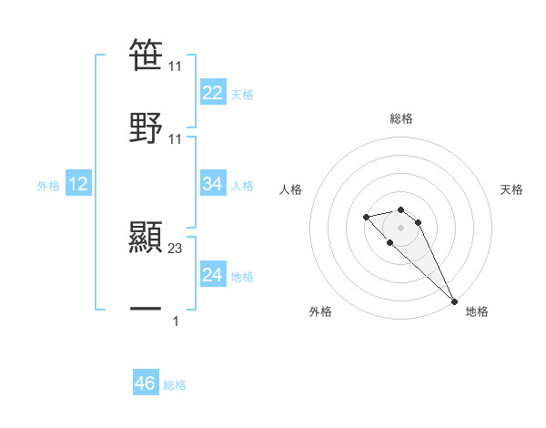 笹野 顯一さんを姓名の画数から五運を鑑定