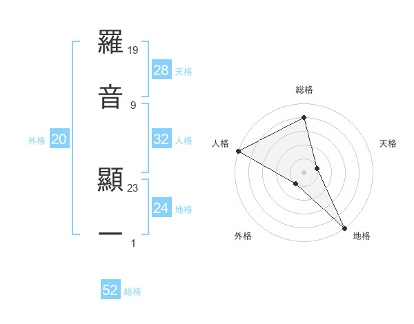羅音 顯一さんの総格は52画の4点!