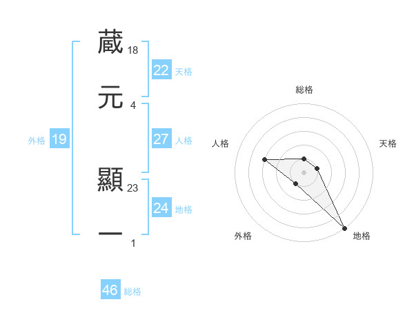 蔵元 顯一さんを姓名の画数から五運を鑑定