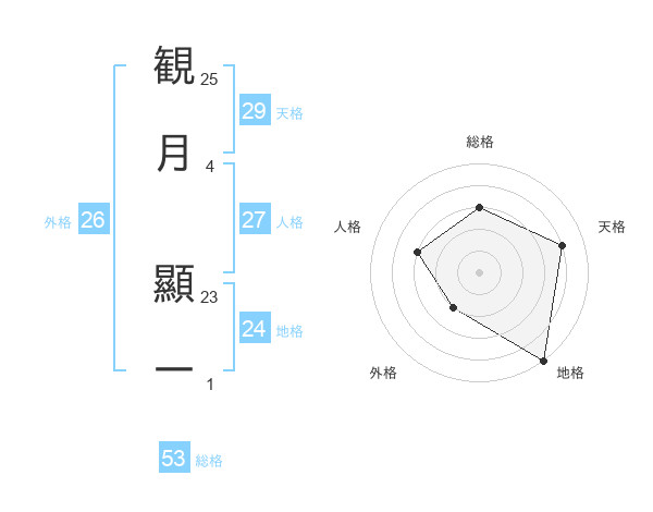 観月 顯一さんの総格は53画の3点!