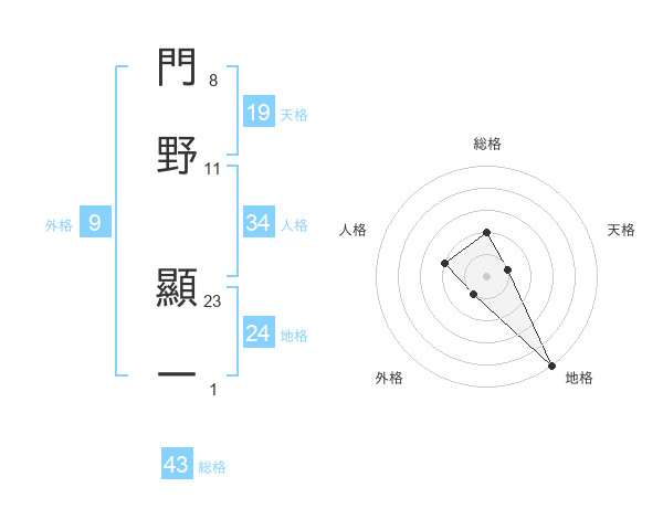 門野 顯一さんの総格は43画の2点!