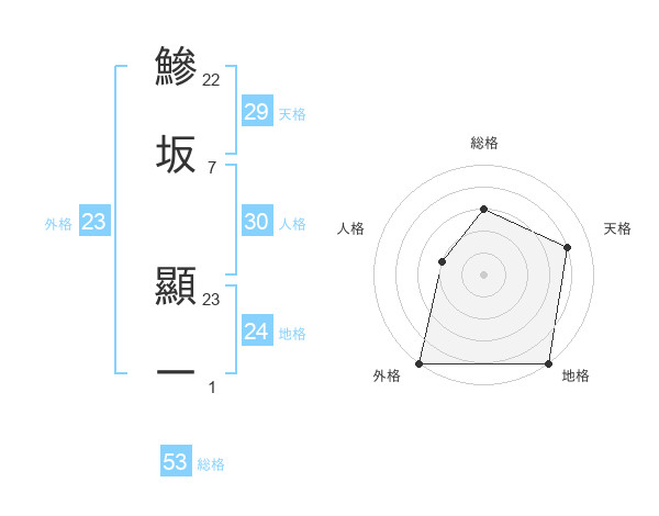 鰺坂 顯一さんの総格は53画の3点!