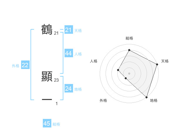 鶴 顯一さんの総格は45画の4点!