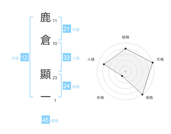 鹿倉 顯一さんの総格は45画の4点!