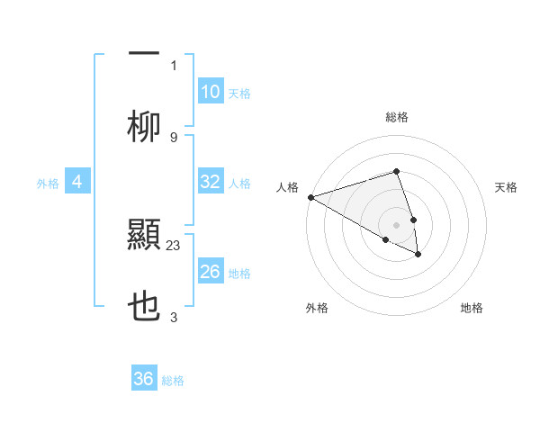 一柳 顯也さんの総格は36画の3点!
