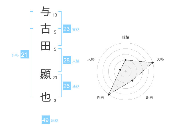 与古田 顯也さんの天格は23画の5点!