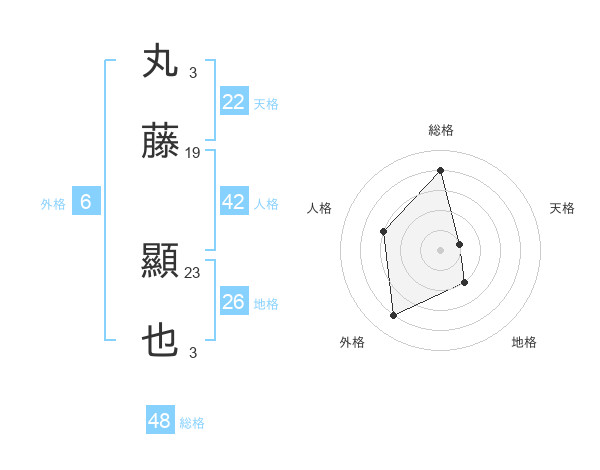 丸藤 顯也さんを姓名の画数から五運を鑑定