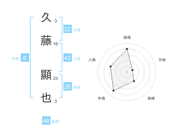 久藤 顯也さんの総格は48画の4点!