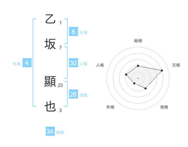 乙坂 顯也さんを姓名の画数から五運を鑑定