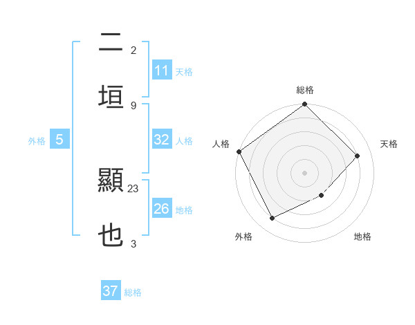 二垣 顯也さんの総格は37画の5点!