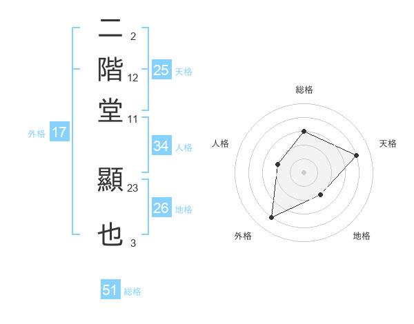 二階堂 顯也さんの総格は51画の3点!