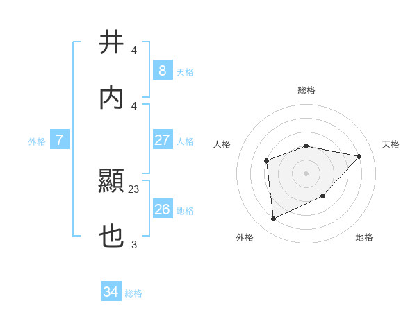 井内 顯也さんの天格は8画の4点!