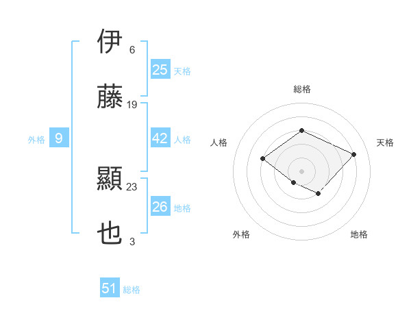 伊藤 顯也さんの総格は51画の3点!