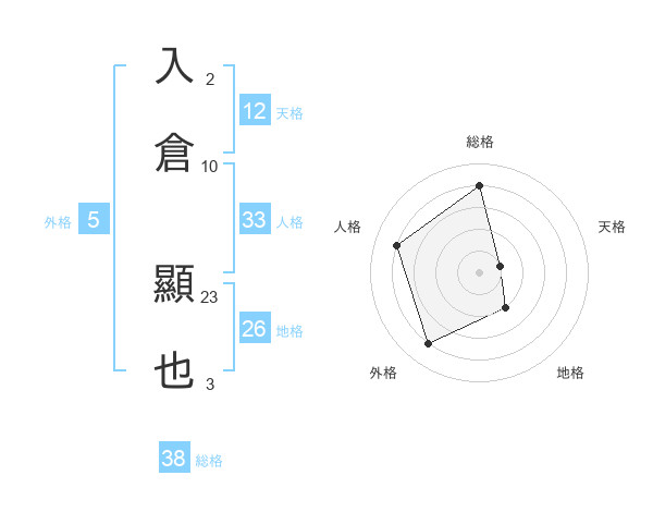 入倉 顯也さんの総格は38画の4点!