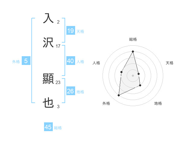 入沢 顯也さんの総格は45画の4点!