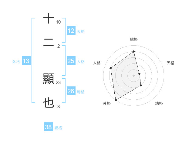 十二 顯也さんの総格は38画の4点!