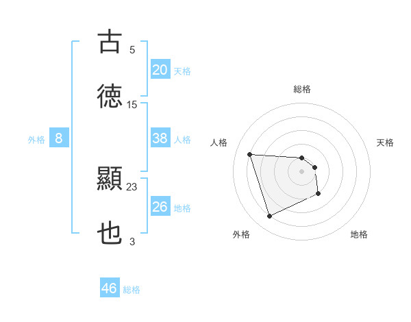 古徳 顯也さんを姓名の画数から五運を鑑定