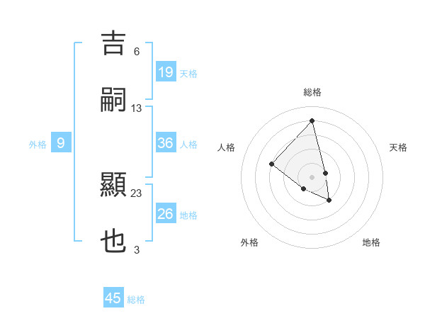 吉嗣 顯也さんを姓名の画数から五運を鑑定