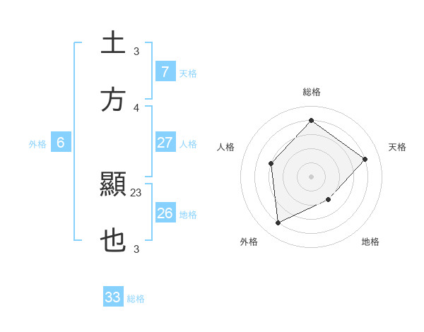 家系が持つ宿命的な運勢を表します。祖先から受け継いだ苗字ですので自分の力が及びません。家柄を象徴します。