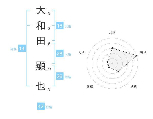 大和田 顯也さんを姓名の画数から五運を鑑定