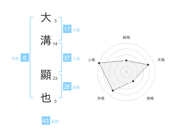 大溝 顯也さんの天格は17画の4点!
