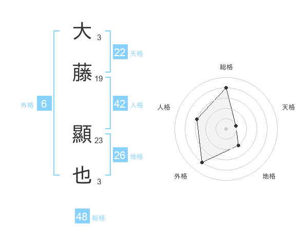 大藤 顯也さんの総格は48画の4点!