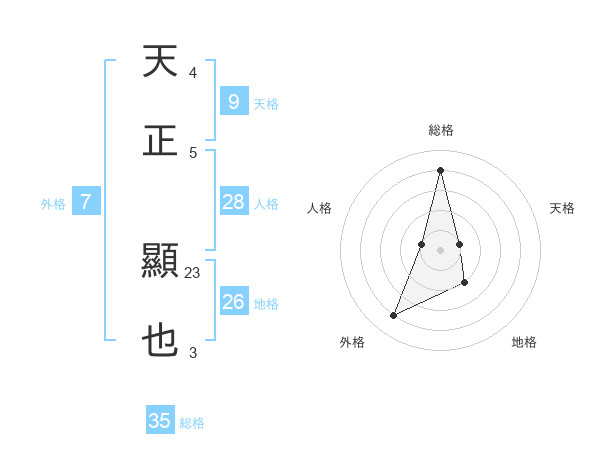 天正 顯也さんの総格は35画の4点!