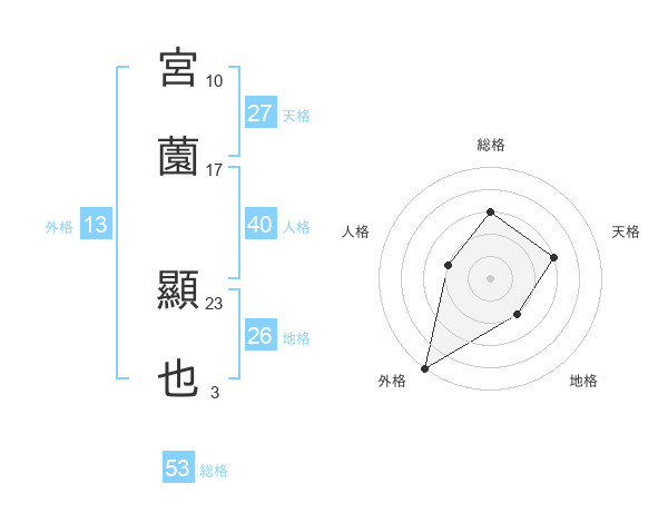 宮薗 顯也さんの総格は53画の3点!
