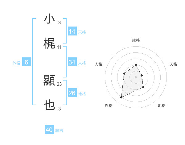 小梶 顯也さんを姓名の画数から五運を鑑定