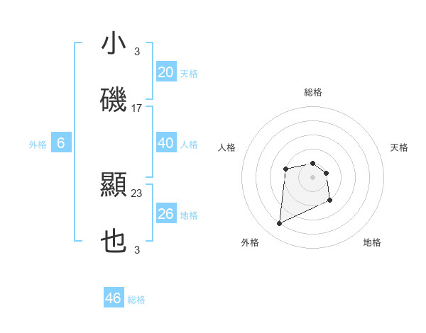 小磯 顯也さんを姓名の画数から五運を鑑定
