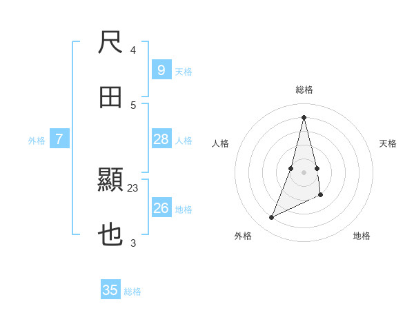尺田 顯也さんの総格は35画の4点!
