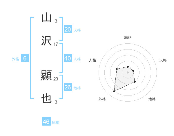 山沢 顯也さんを姓名の画数から五運を鑑定