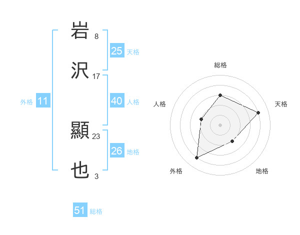 岩沢 顯也さんを姓名の画数から五運を鑑定
