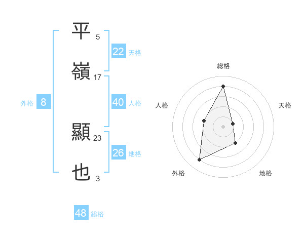 平嶺 顯也さんの天格は22画の1点!