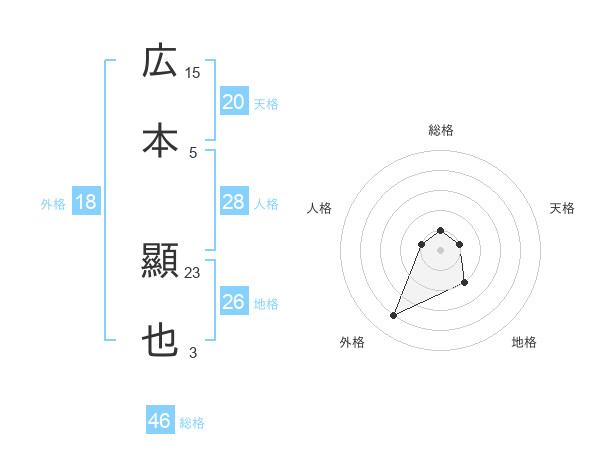 広本 顯也さんの総格は46画の1点!