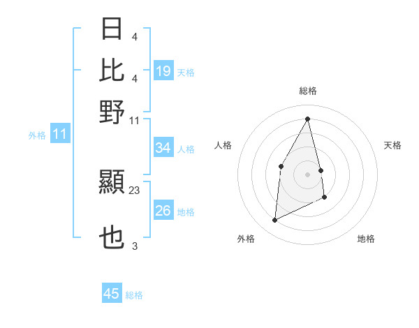 日比野 顯也さんを姓名の画数から五運を鑑定