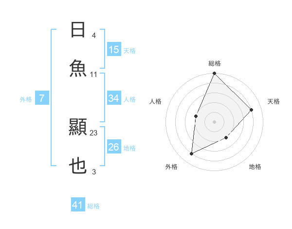 日魚 顯也さんの天格は15画の4点!